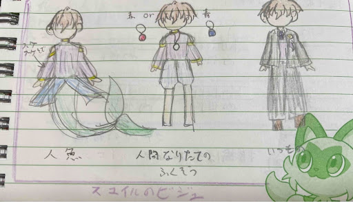 このお話のビジュとかは、全部自分で描いてて…前みせた