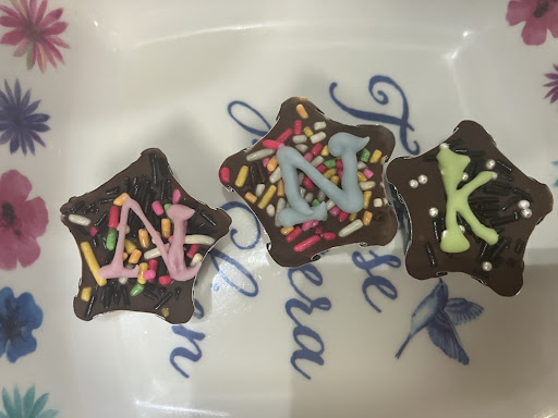 カラフルチョコスプレーは🐬ちゃんの明るさとか太陽のような、虹のような、そのー、みんなに元気を与える彼女を表してます!! んでチョコペンのNはイニシャルです