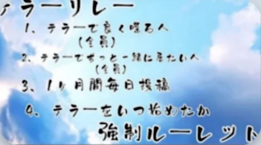 ただいま画像は、前のTERRORリレーの順番通りだよ