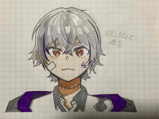 黒ペンがなくて、シャーペンで塗ったから髪がぴっかーんしてる