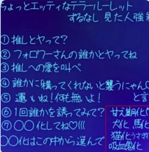 ちょっとね、最初の3個くらいは同一人物に強制的にやらされました( ᐛ )✌︎いやぁ、あの人怖いわぁ(ᐙ三ᐕ)他のやつはまぁ自分からなりにいった☆(?)内容かなりやっべぇやつ多いけどもこの背景見て落ち着いてちょ☆