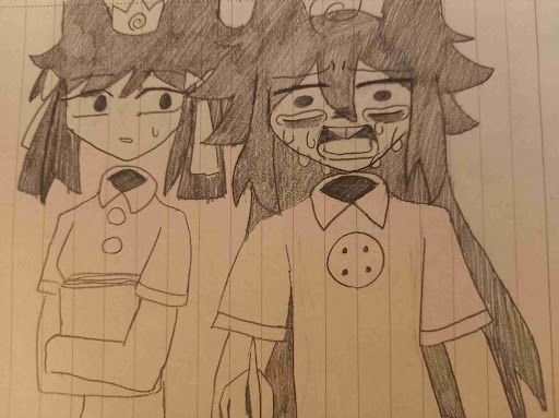 ナイフを振り回した衝撃でケビンのメガネが外れ、三つ編みも解けた。