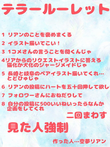 初コメ、かな?、見てねってあったからいつもみたいにめっちゃ上手い絵かと思ったらテラルレww、フォローしとくね( *´꒳`*)