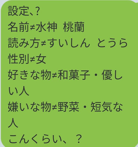 名前 ????? 年齢????? 性格 大人しい? 好きな物 世界 嫌いな物 人間